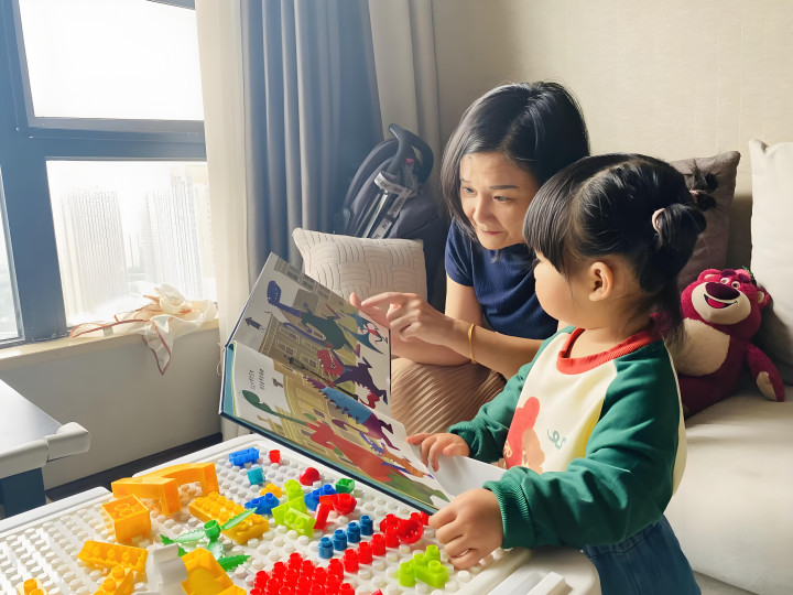 我姐在孩子一岁半的时候,每天坚持给他读绘本、指认颜色、玩拼图。